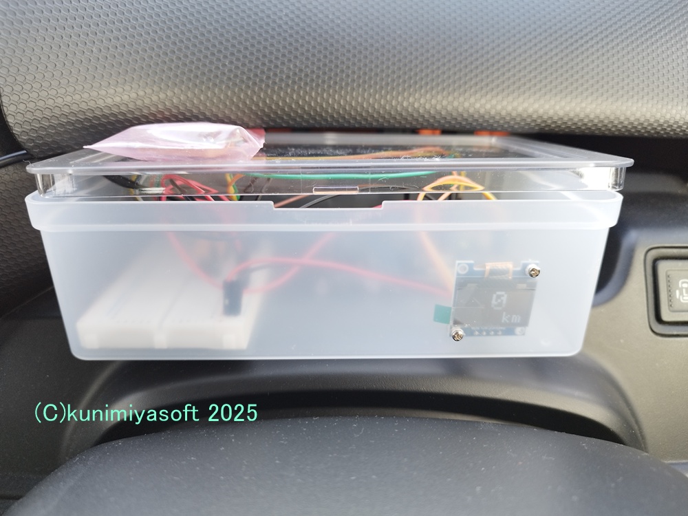 そのため、今回のシステムは、車のアクセサリーソケットから電源を取り、電源が入るたびにプログラムが実行される形になっています。これも、ストレージを必要としないArduino UNO R4 Minimaだからこそです。良い使い方ではないかもしれませんが、活用していきたいと考えています。