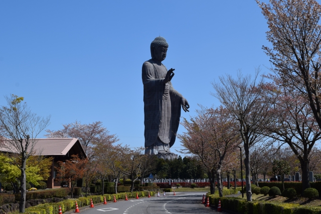 牛久大仏は、茨城県牛久市にある青銅製の仏像です。仏像自体の高さは100m、台座は20mあり、付近のランドマークとなっています。