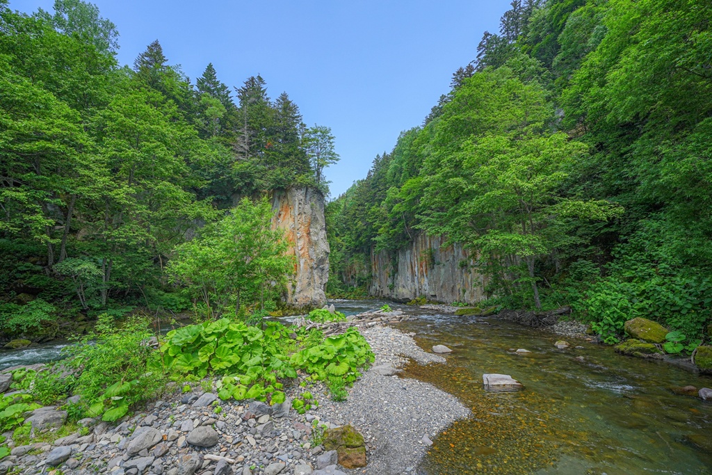 大函は、石狩川本流とニセイチャロマップ川が合流する場所にあります。層雲峡温泉から大函までの石狩川両岸は柱状節理の断崖に囲まれており、大函の東側でようやく平らなスペースを確保できることから、観光施設や駐車場ができて、大いに賑わいました。